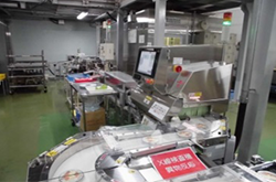 包装したチーズをX線検査機、金属検知器で異物がないことを確認します。
